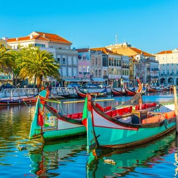 Aveiro is a city on the west coast of Portugal set along a lagoon called Ria de Aveiro. It's distinguished by its canals navigated by colorful boats (barcos moliceiros)
